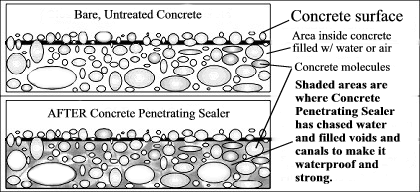 - Penetrates deep into the concrete: Travels through microscopic pores and capillaries beyond the surface.